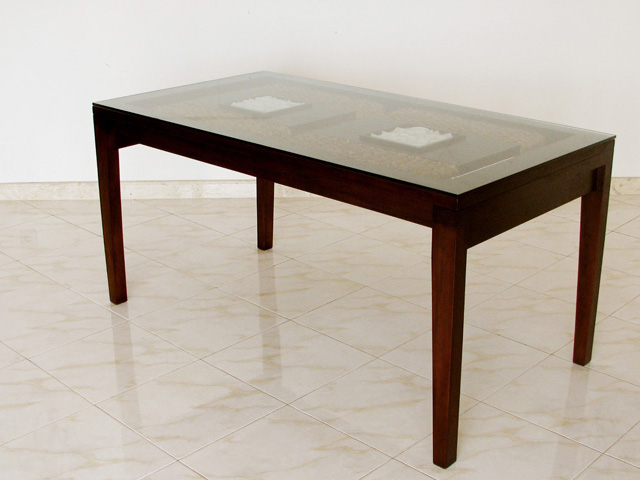 天板ガラスの下には、ヒヤシンス&ストーンカービングの組み合わせ