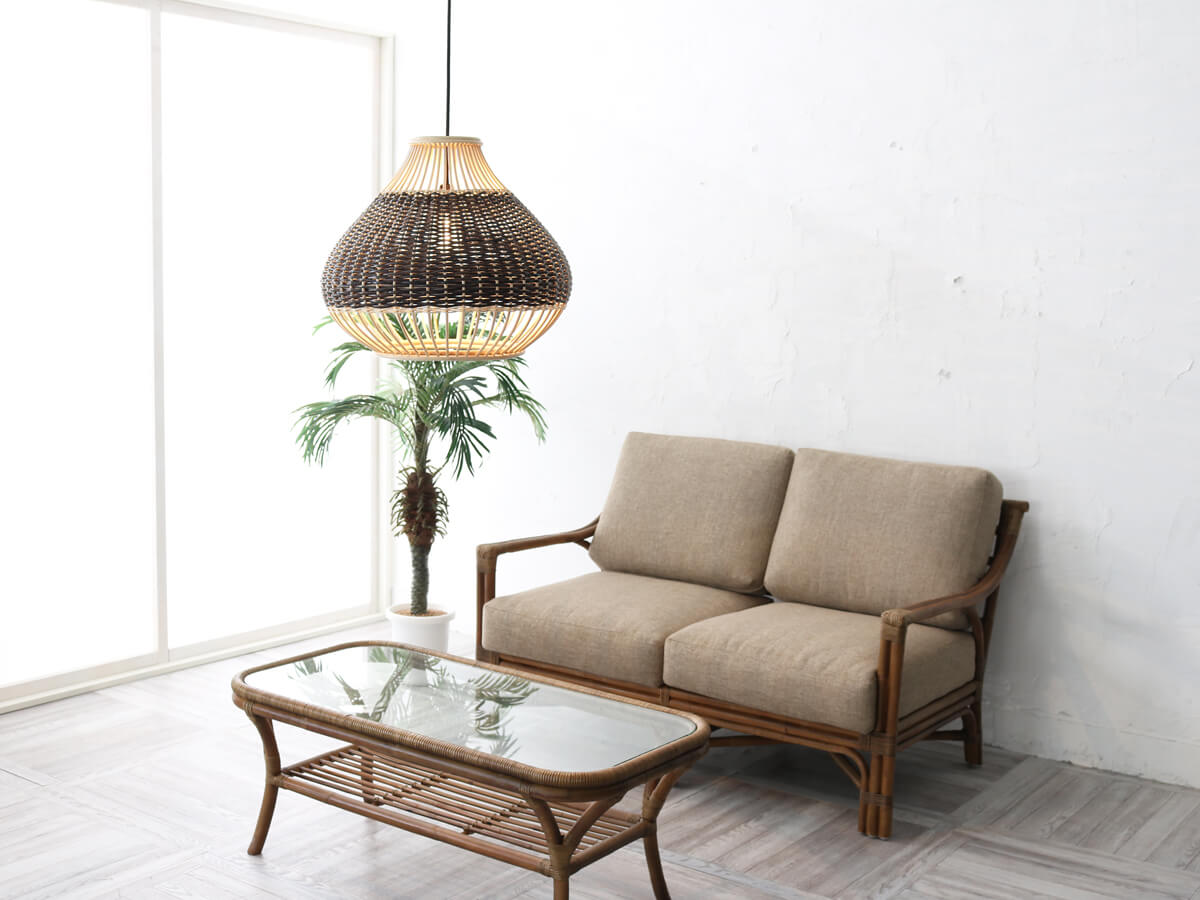丈夫なラタン素材に馴染みやすいブラウン色のクッション地。