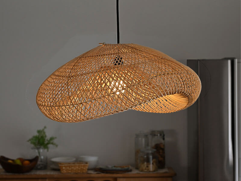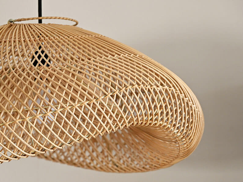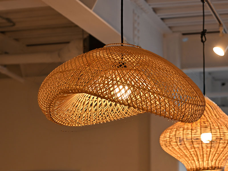 天然素材ラタンのランプシェード。通気性が良くしなやかなラタンの特性を生かしたランプシェードです。
