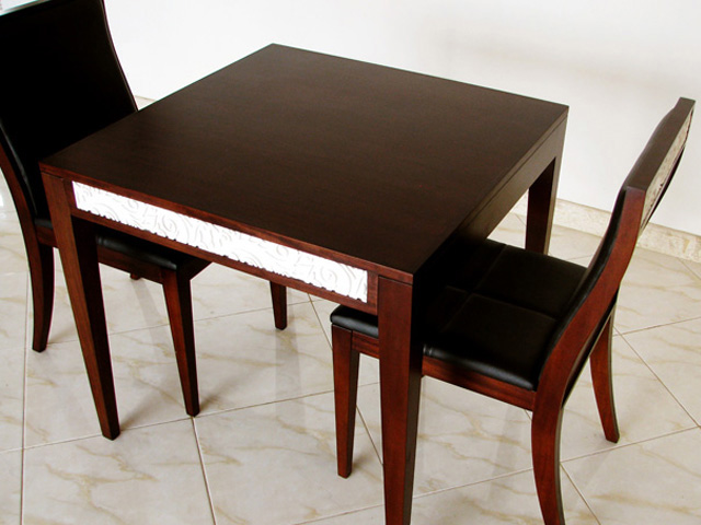 アジアンインテリア定番のマホガニー材とストーン彫刻を組み合わせたカフェテーブル3点セットです。