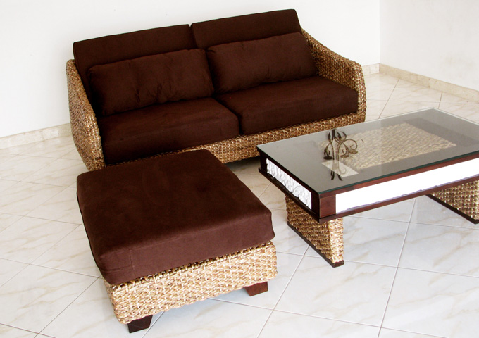 アジアン家具特有のウォーターヒヤシンスを使用した3人用ソファです。