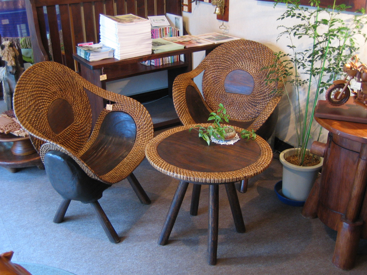 インドネシアバリ島で手作りされたラタンウッドテーブル3点セットです。