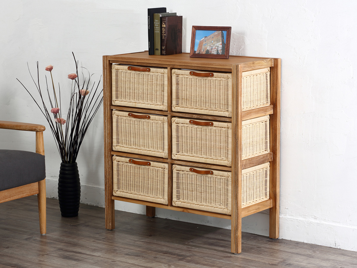 素材:チーク(フレーム)・籐・天然木(引き出し)内布