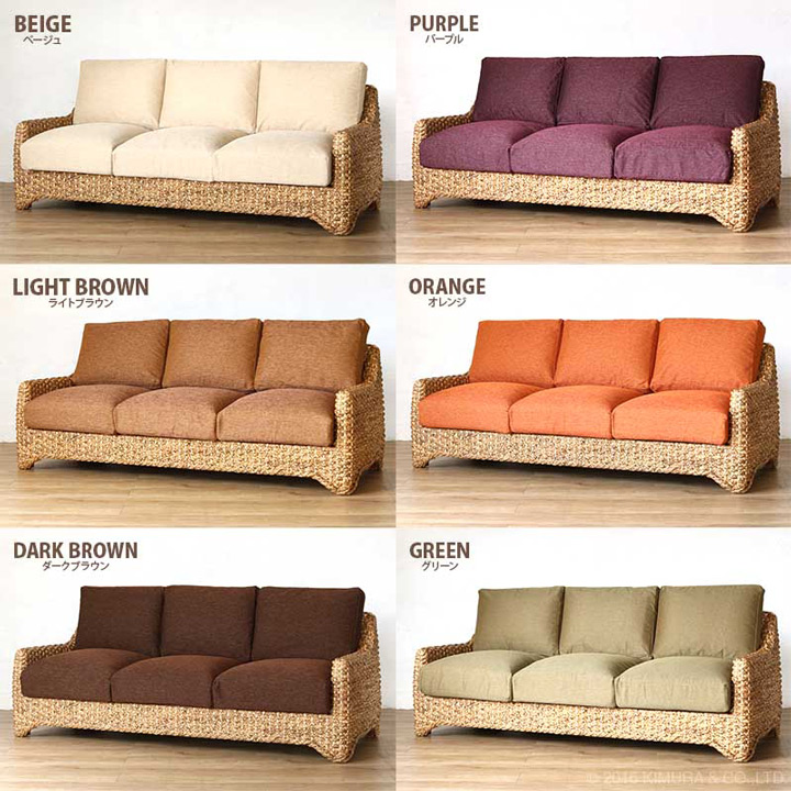 ウォーターヒヤシンス 3人掛けソファ ナチュラル 【アクビィ】カラー選択可能