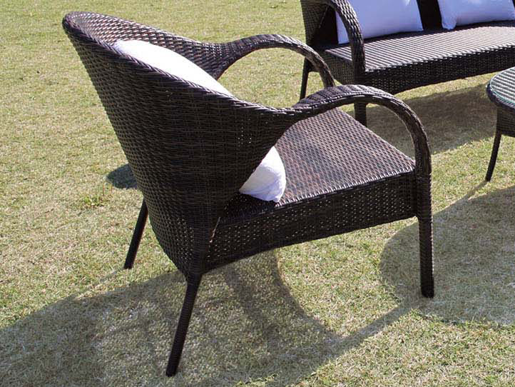 人工ラタンを使用したガーデンアームチェアです。リゾートホテル、旅館、レストランなどの屋外スペースにおすすめです。ショールーム、スパリゾートなどの温浴施設に如何ですか?