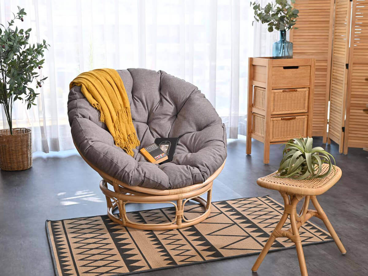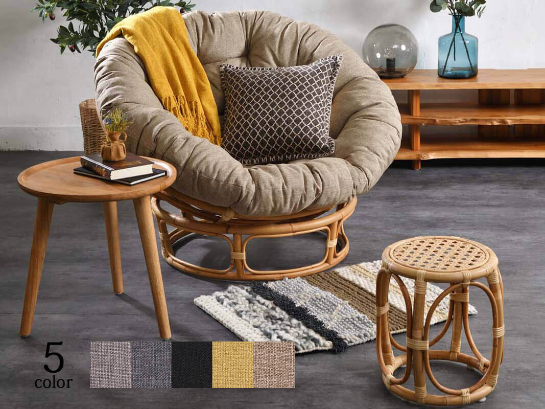 使い方次第でデイベッドとしても使えるアジアンインテリアにはお馴染みのパパサンチェアです。