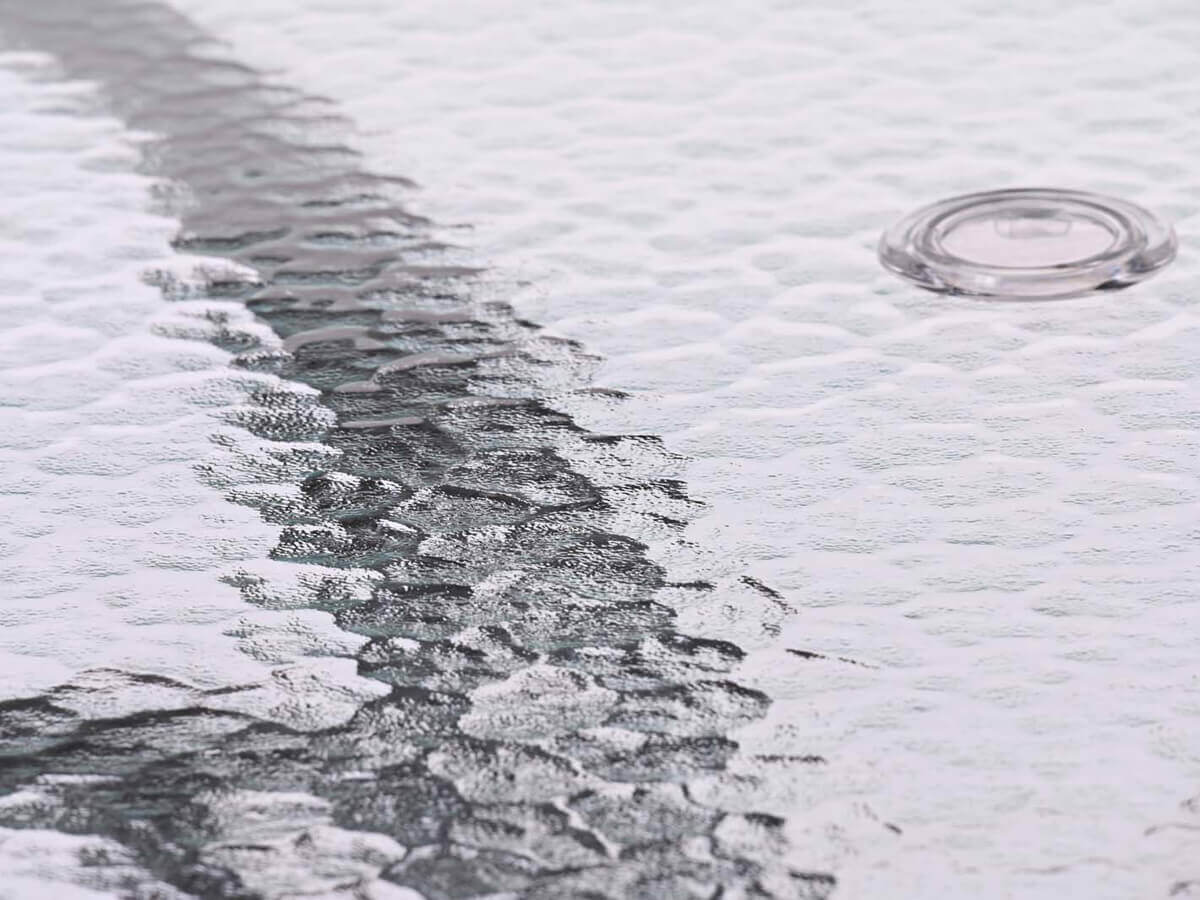 天板は光にあたると水面のようにキラキラ光り、涼しげな雰囲気を与えてくれるデザイン。