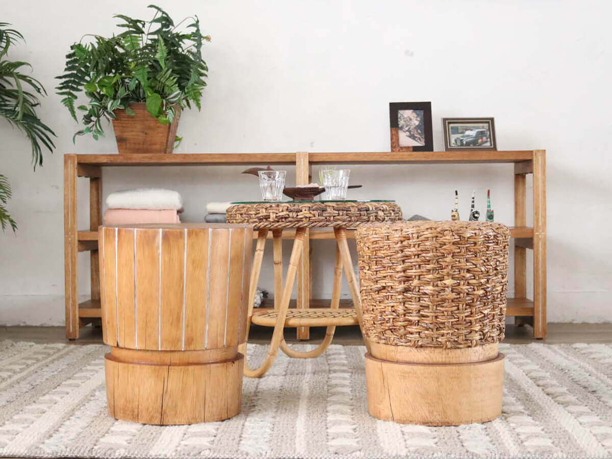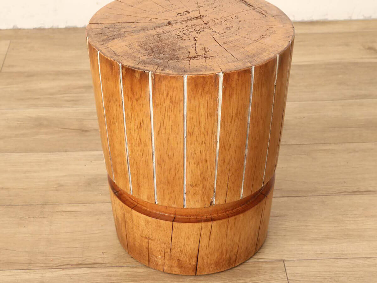 天然の丸太をそのまま切り出したようなナチュラルテイストのスツール。