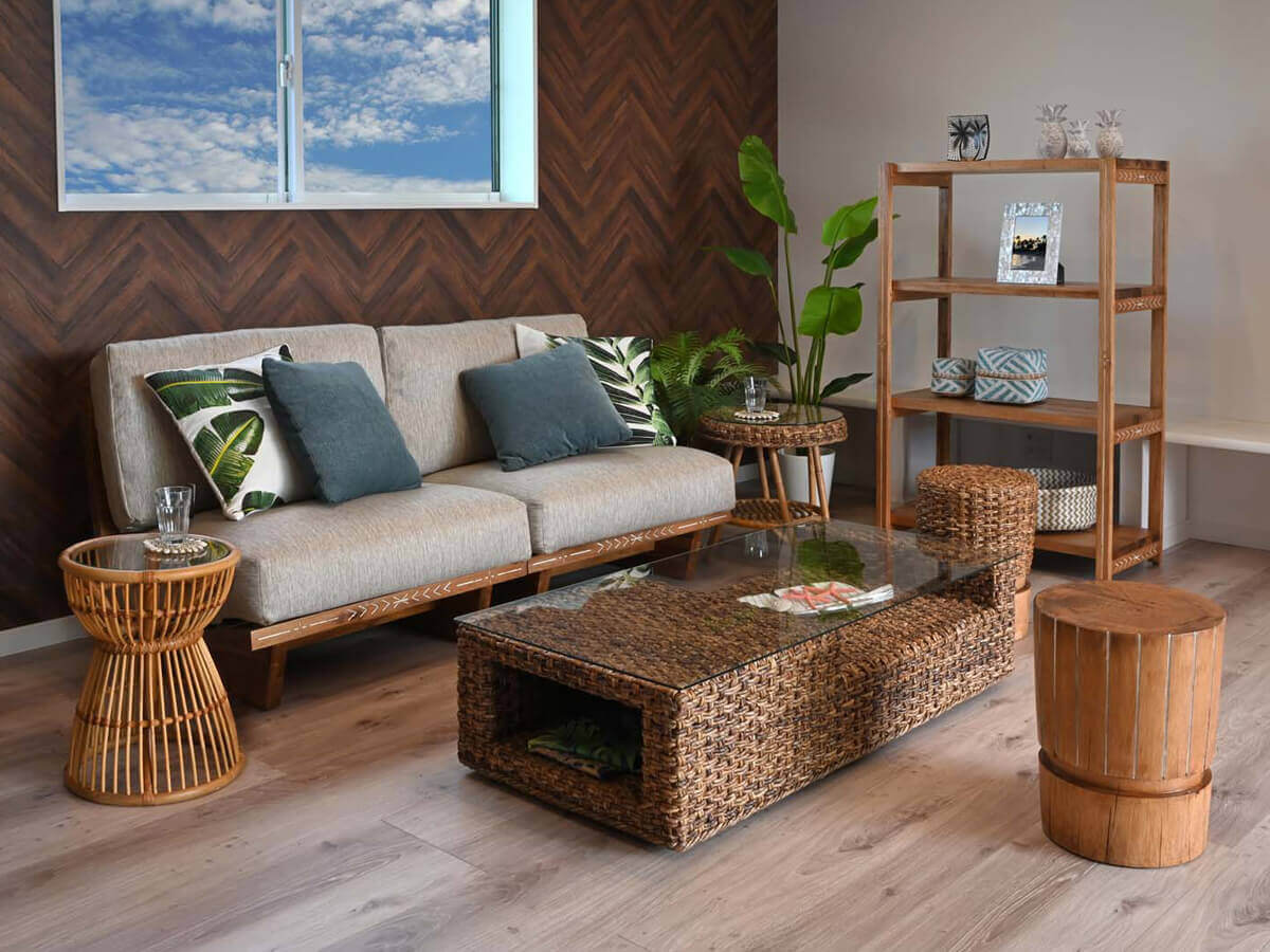 ハワイ島の隠れ家にいるような気取らずリラックス感があるカジュアルインテリア