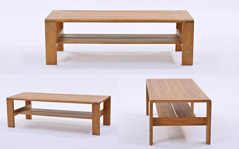 工場でチークの丸太から製材した本物の無垢材は、大切に使えば使う程風合いが増し、味わい深いビンテージな家具に変化していきます