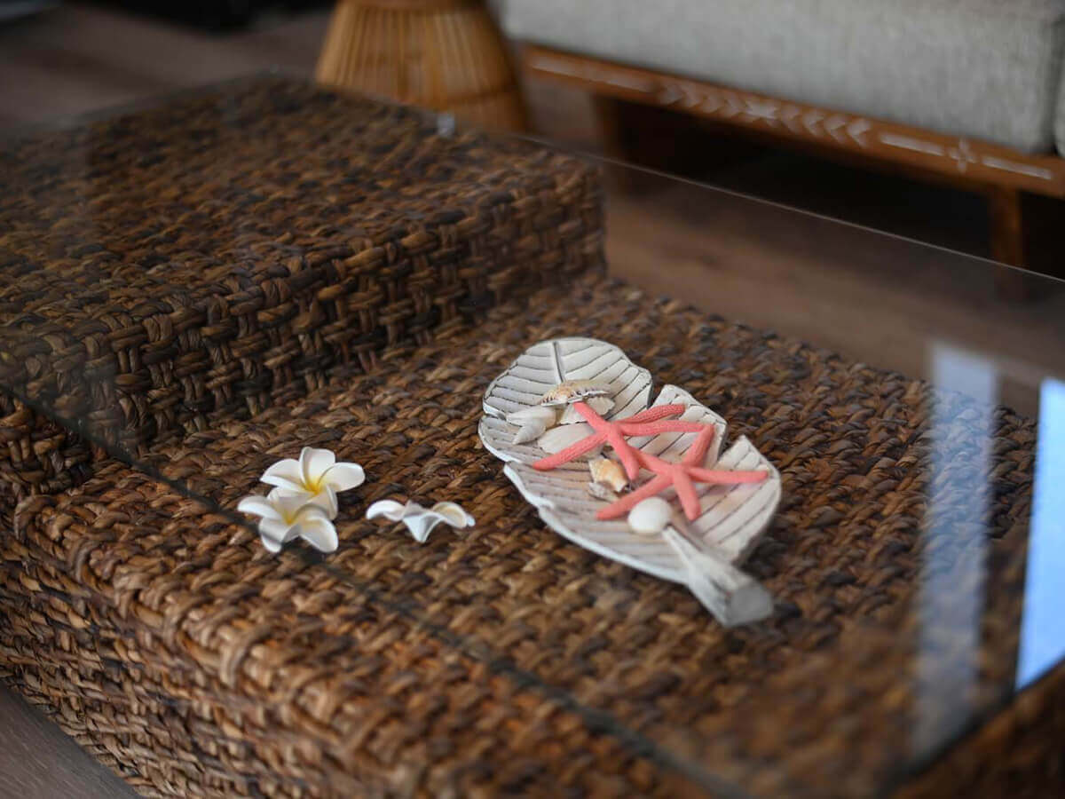 ハワイアンインテリアにぴったりのバナナリーフのローテーブル
