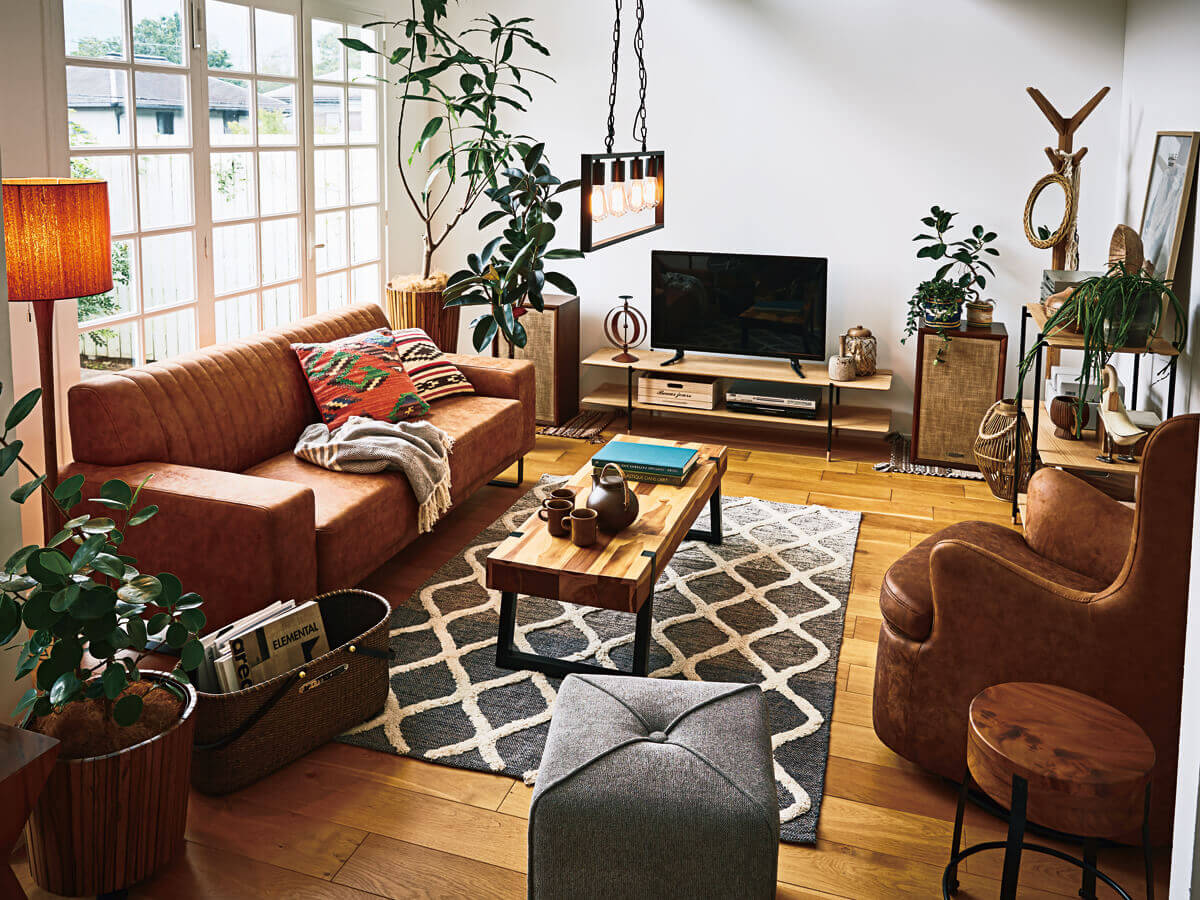 ファブリックを使用。本革のビンテージのような存在感が特徴的。