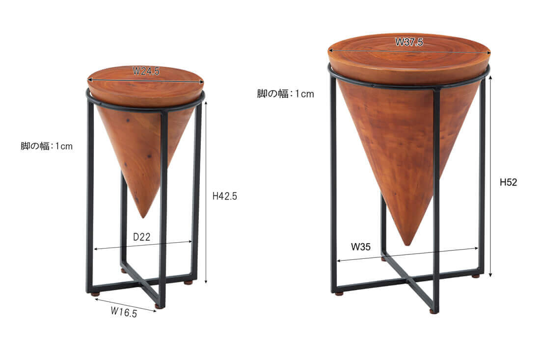 天然木の重厚感とアイアンの細いラインが絶妙なバランスの丸サイドテーブルです。