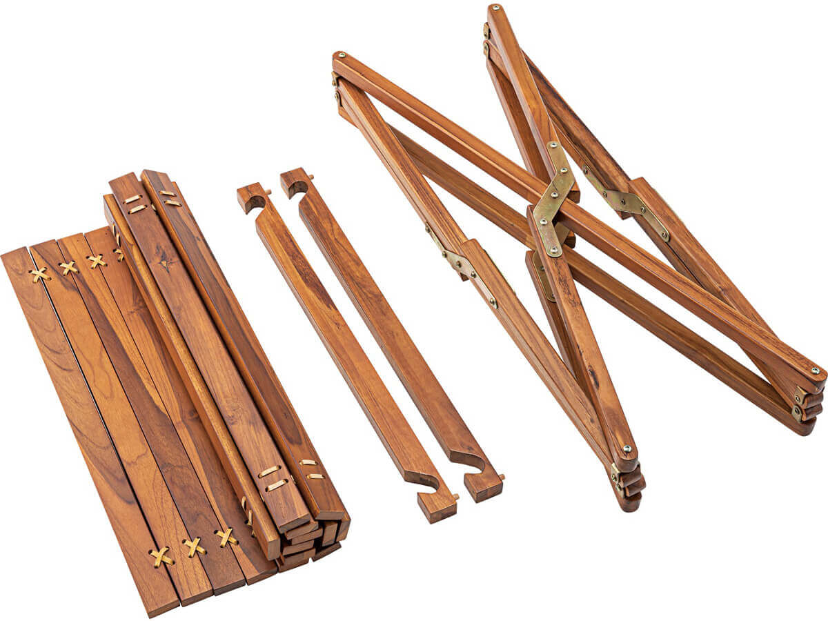 チーク材製で、木材の繋ぎは本革を使用しています。