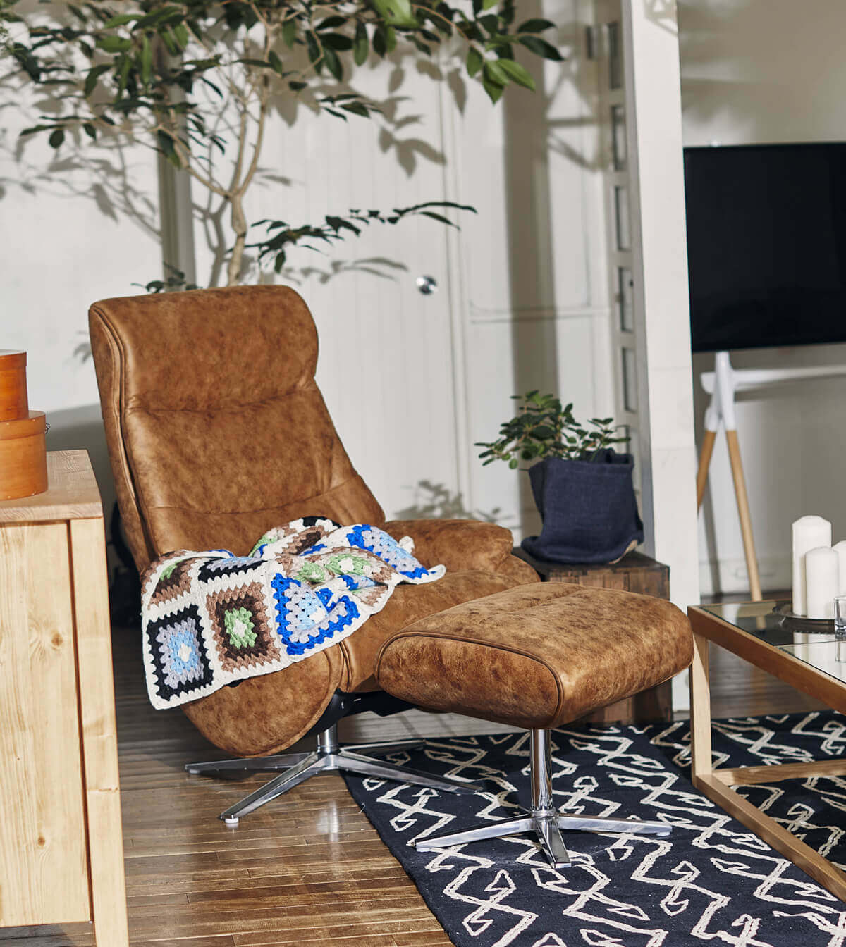オットマン付きなので脚も伸ばせてゆったりリラックス。