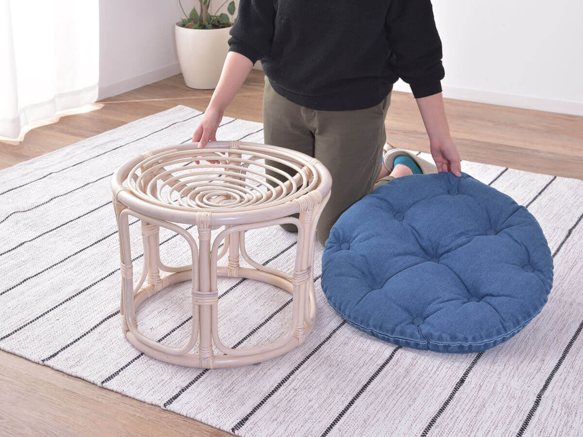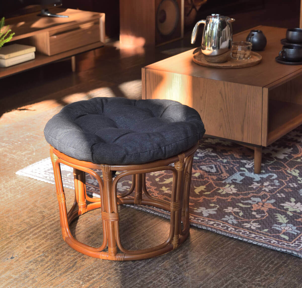 ふかふかクッションのラタンスツール【2タイプから選択】