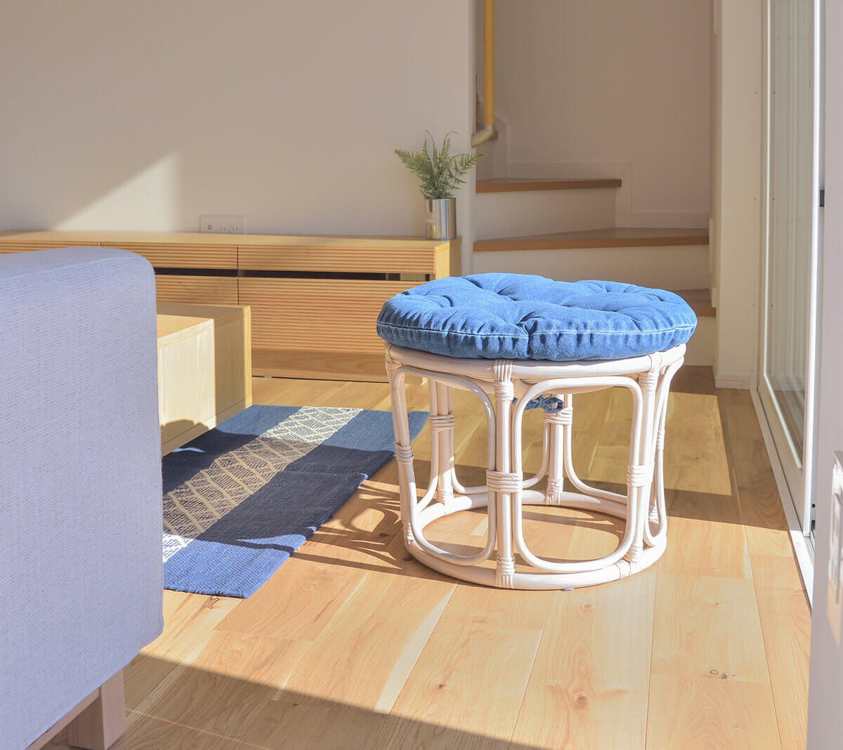 玄関や階段の踊り場などちょっとした腰かけスペースにも最適です。