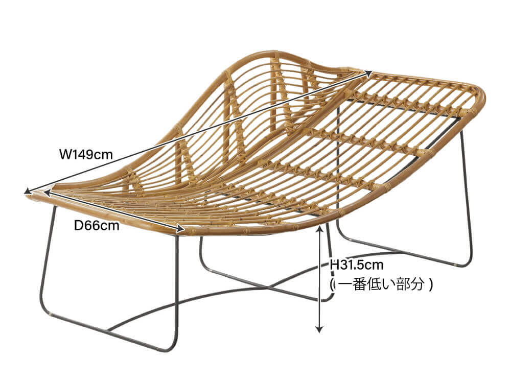 ラタン(籐)の自然のカーブが身体を支えてくれます。ごろんと寝転んだり、くつろいだり、まったりしたり癒しの時間を楽しめます。