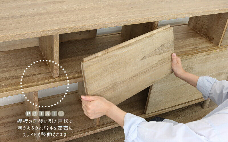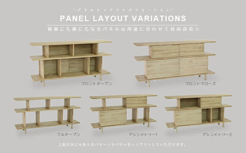 上下4枚のパネル板は取り外し可能。お好きなかたちにカスタマイズすることで、収納と魅せたいインテリアをお好みで変えることができます。
