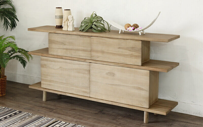 自然の形をそのままにチーク材を贅沢に使用したラックは長く愛用したいアイテム。高級木材チーク材は、大切に使えば使うほど風合いが増しビンテージ家具のように経年変化を楽しめます。木の木目や風合いが感じらせるナチュラルな家具は日々を大切にしたい方におすすめです。