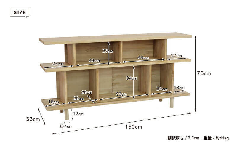サイズ:幅150cm×奥行33cm×高さ76cm