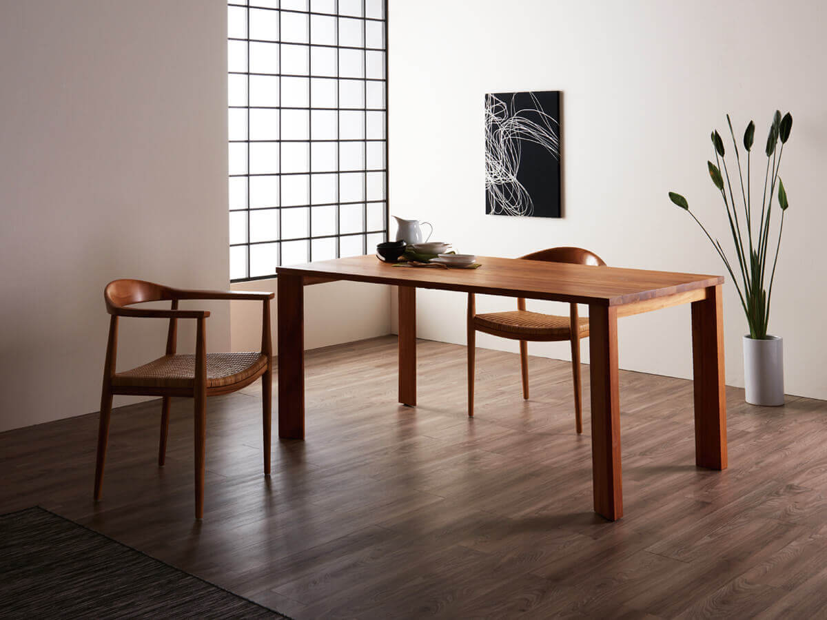 ジャパニーズモダン住宅 では、フローリングでありながら、畳や障子、土間、床の間、坪庭といった日本古来からある空間や自然を愛でる機会を大切にしたお部屋づくりを楽しむ方も多いと思います。フローリングは明るいナチュラルブラウンカラーをベースに、チークや籐、ウォーターヒヤシンスなどの自然素材を取り入れながら床と同系色の家具でまとめるとよいでしょう。今回は、そんなジャパニーズモダン住宅 に合う家具を10商品セレクトしました。