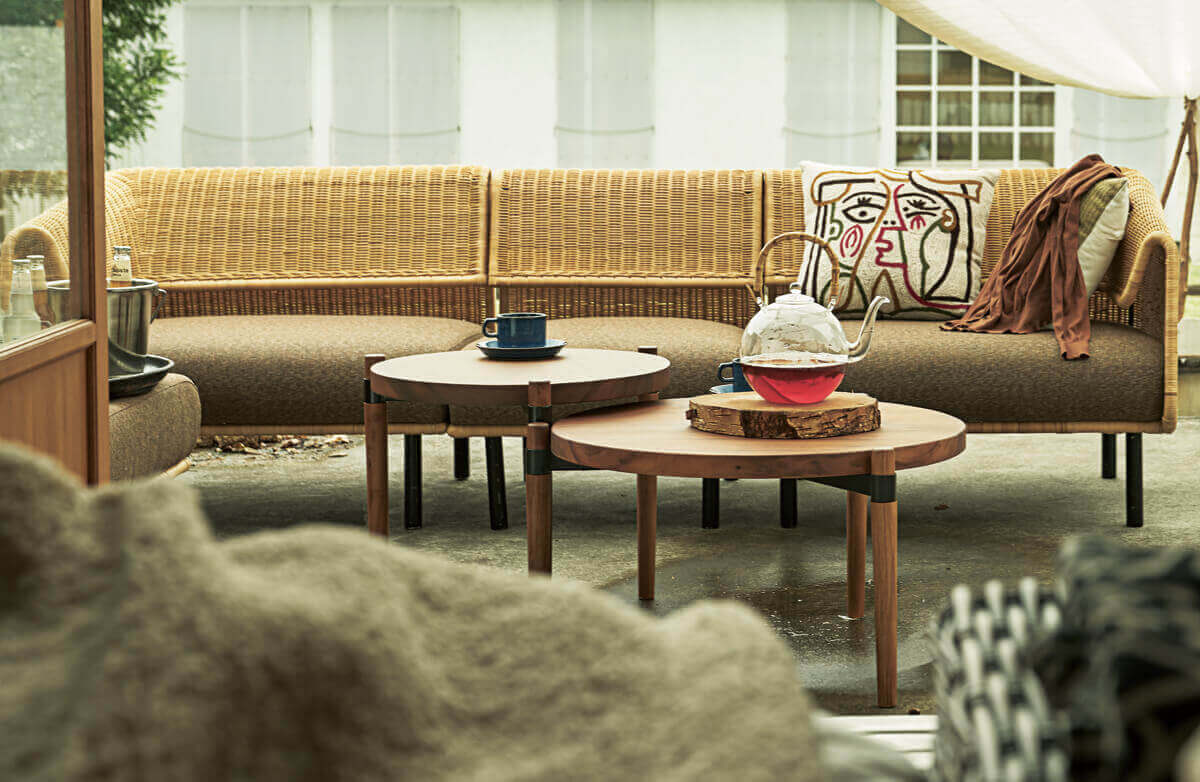 大小のネストテーブルを並べて配置するのが流行中。北欧インテリアの要素を取り入れたデザインです。